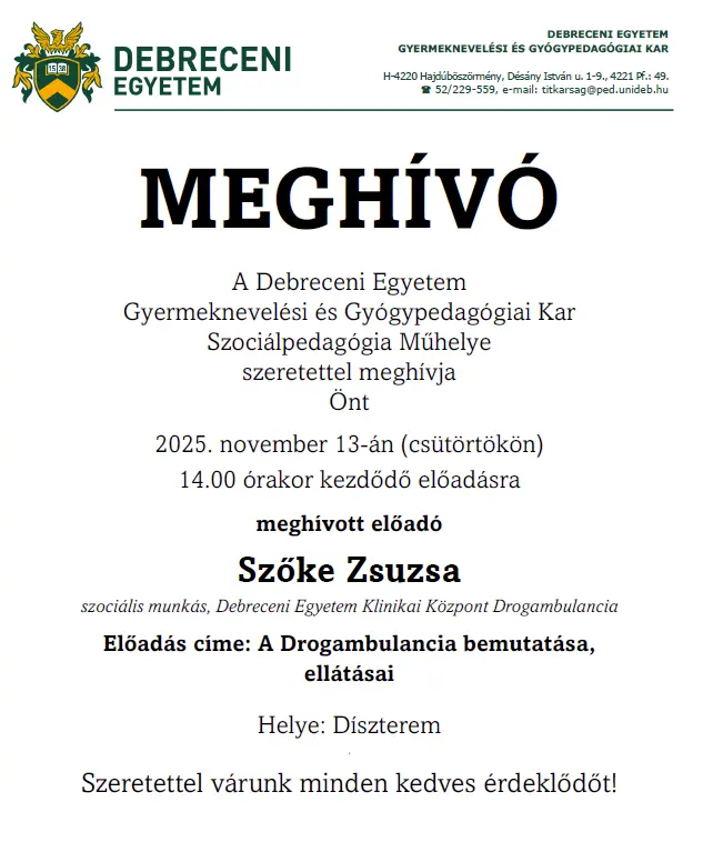 A Drogambulancia bemutatása, ellátásai - Szőke Zsuzsa előadása | Gyermeknevelési és Gyógypedagógiai Kar