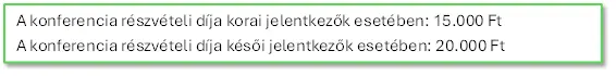 KONFERENCIA RÉSZVÉTELI DÍJ: